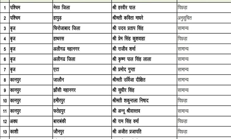 UP के 14 जिलों में BJP जिलाध्यक्ष की घोषणा